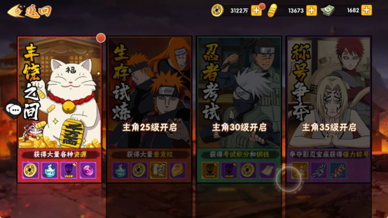本游戏有非常多有意思的副本玩法,丰饶之间完成不同玩法副本,可获得大量忍者培养资源,快速升阶,战力翻倍。在忍者之路中首通层数可获得珍稀装备、武将碎片奖励,扫荡可获得大量铜钱和突破石。在妙木山进行忍者单挑过关,解锁随机奇遇,更有多种玩法,获取丰富资源。