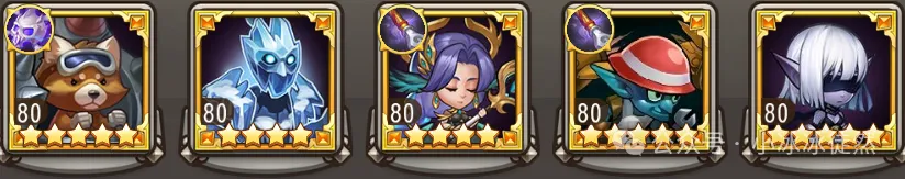 高分阵容就是图里这几个,图里3星传奇装备+满装备英雄,218分差一丝血(先锋服目前最高218分),法杖换面纱可能容易点