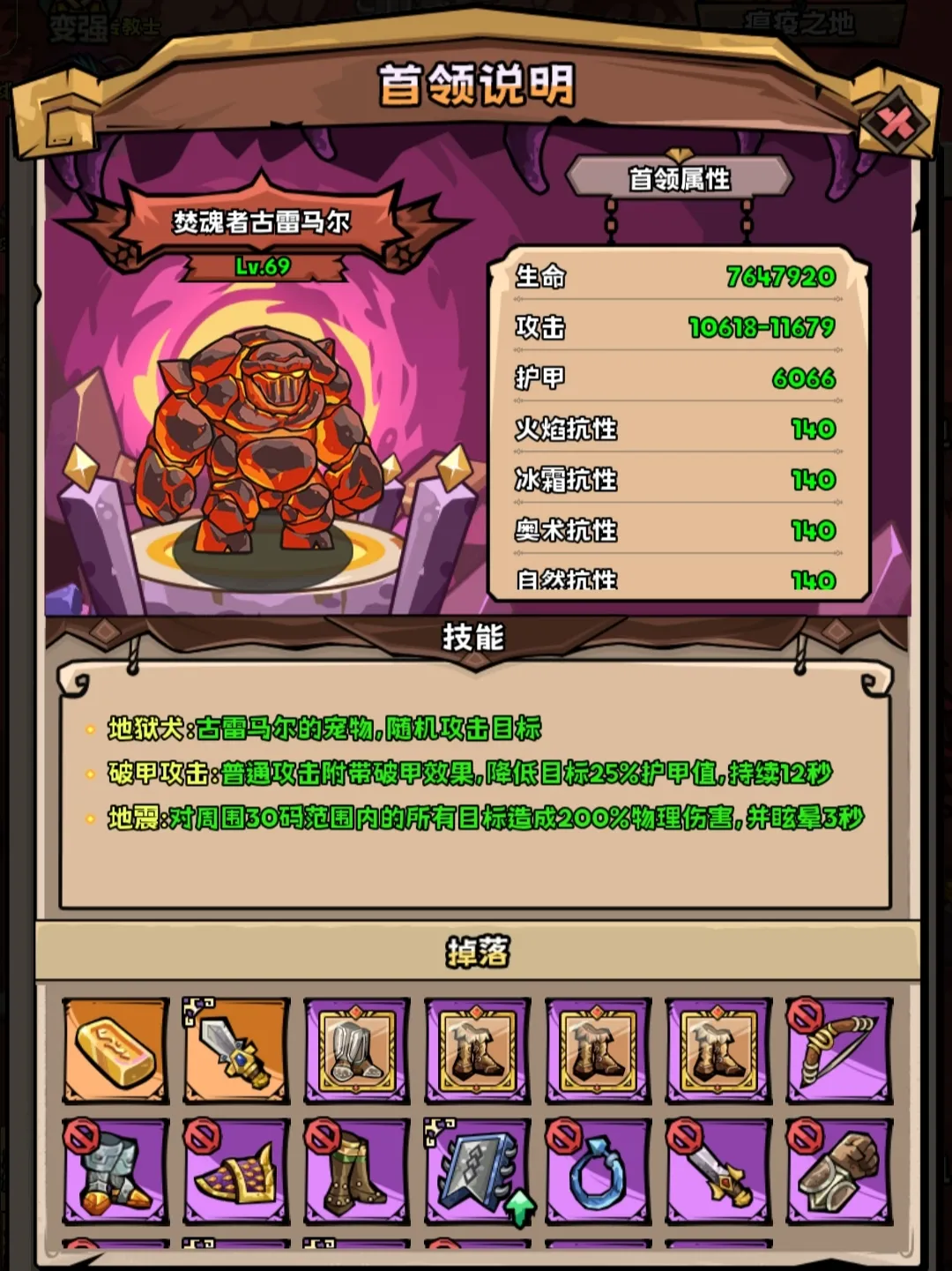 注意事项:此BOSS名为坦克杀手,一拳一个小朋友,二三下秒杀一个坦克非常正常,因为死亡的坦克不计其数,所以被削弱了一次,现在还算正常,反正这个BOSS对于开荒的队伍来说,就是坦克压力很大,范围读条还是要躲避的,伤害很高还带晕。