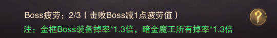 另外BOSS之家每层都有白金魔与暗金魔,击杀不消耗精气值,但两个BOSS会在地图上随机刷新,无自动寻路。掉落主要以至宝为主,不推荐花费过多的时间寻找这两个BOSS。